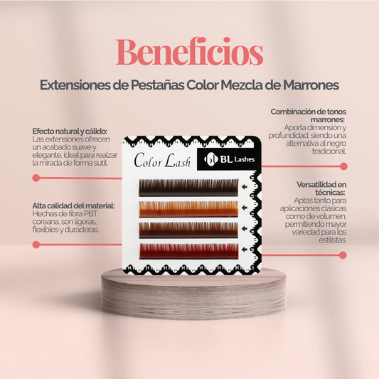 Extensiones de Pestañas Color Mezcla de Marrones (4 Líneas)